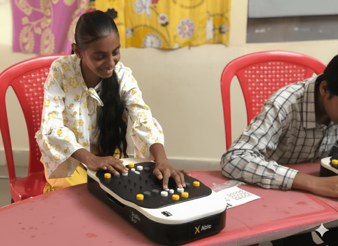 When a person uses Braille Box for the first time, something beautiful happens—they discover they can learn and connect. Across India, visually impaired and deafblind children are experiencing this moment, finally accessing literacy through a device built just for them.